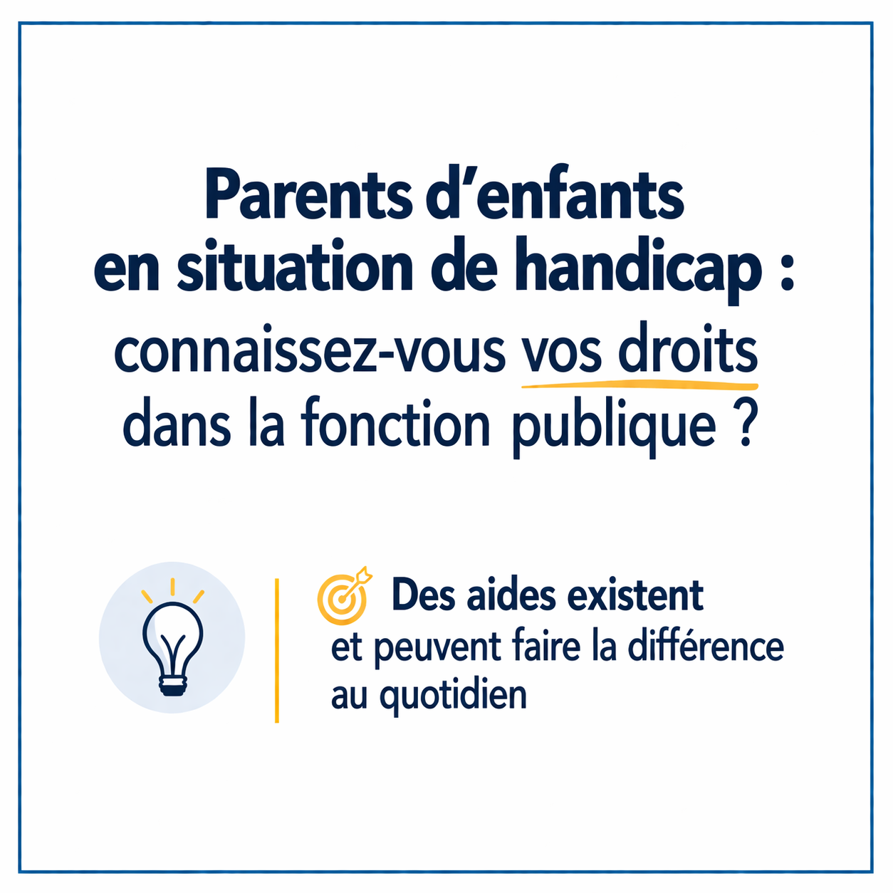 L'association est par ailleurs très au fait de toutes les possibilités offertes aux parents d'enfants pour s'occuper de leur progéniture (jours accordés, ASFV...) et aux personnes en situation de handicap (bien-être sur le poste de travail, retraite...).