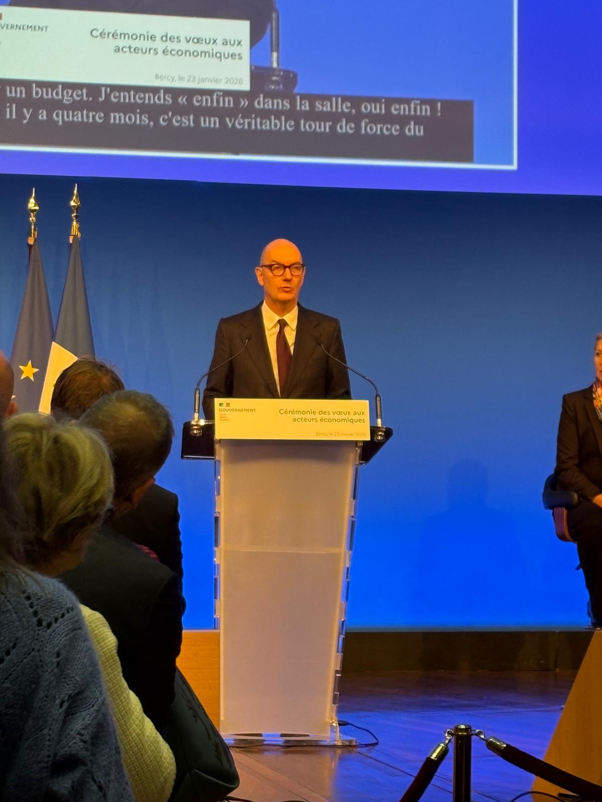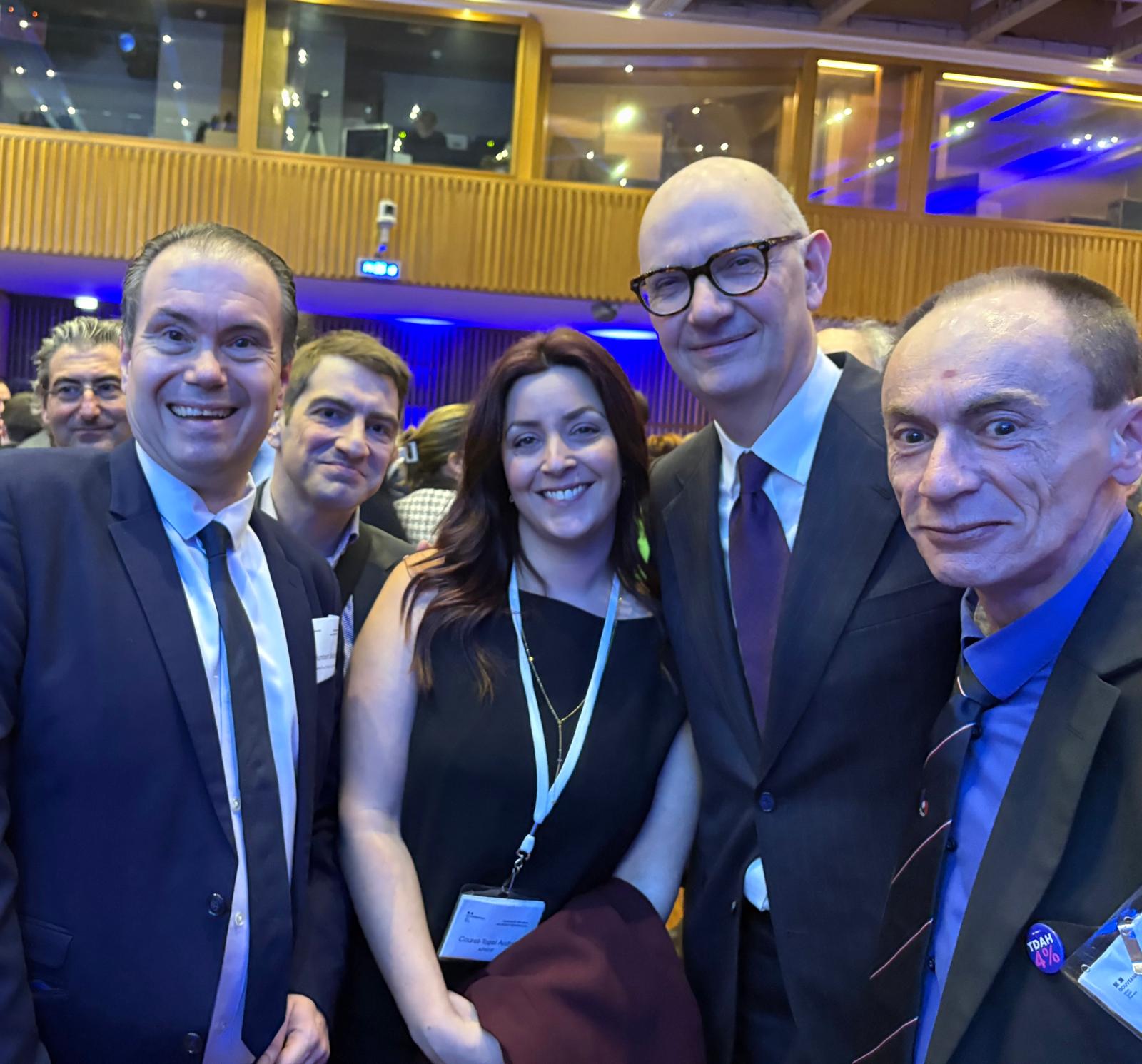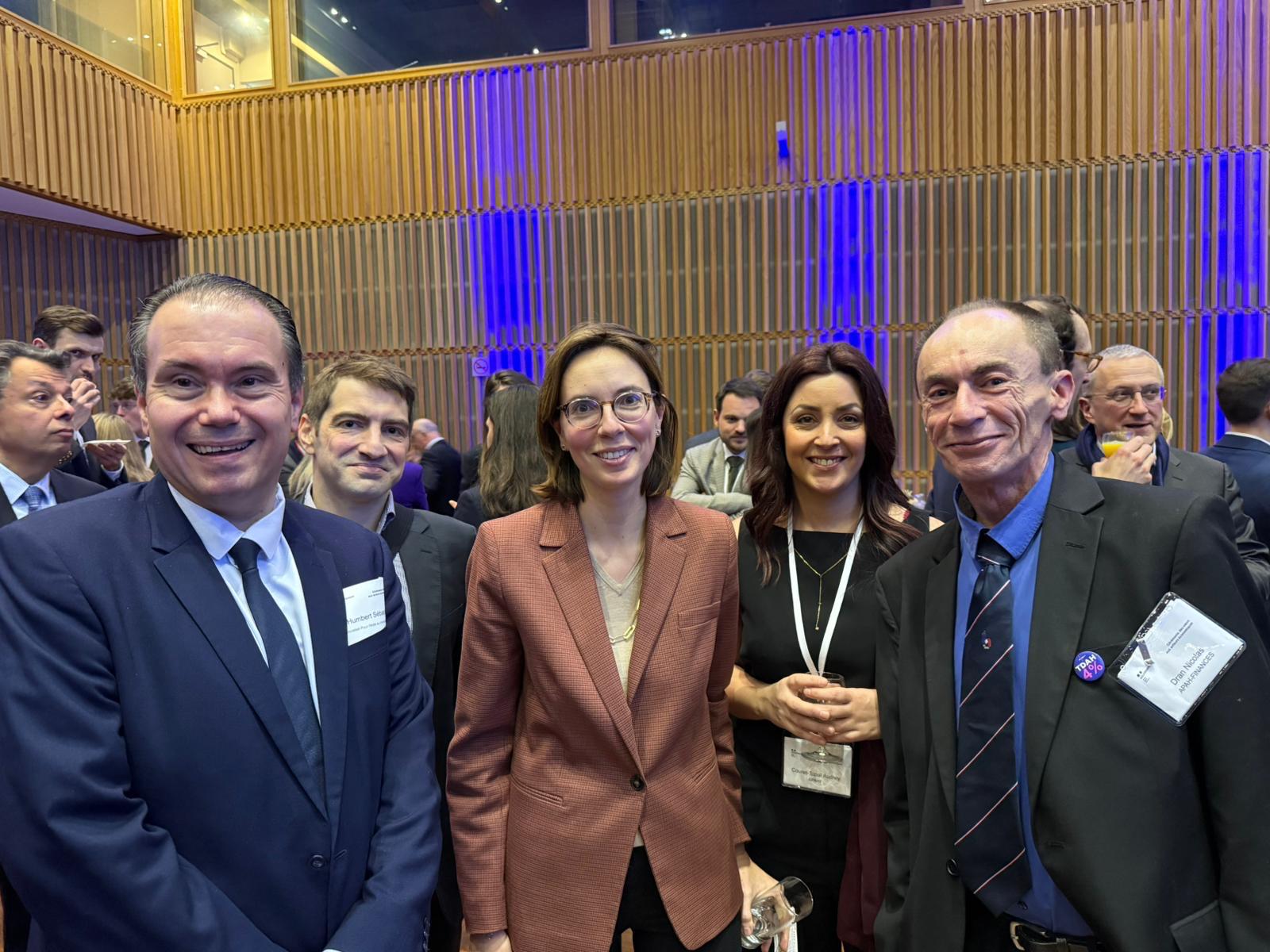 A l'issue des discours des Ministres, notre sympathique quatuor a eu la chance de pouvoir échanger avec Roland Lescure (Ministre de l'Économie, des Finances et de la Souveraineté industrielle, énergétique et numérique) et Amélie de Montchalin (Bommier) (Ministre de l’Action et des Comptes publics). Fructueuses discussions qui laissent augurer de rencontres constructives en 2026.